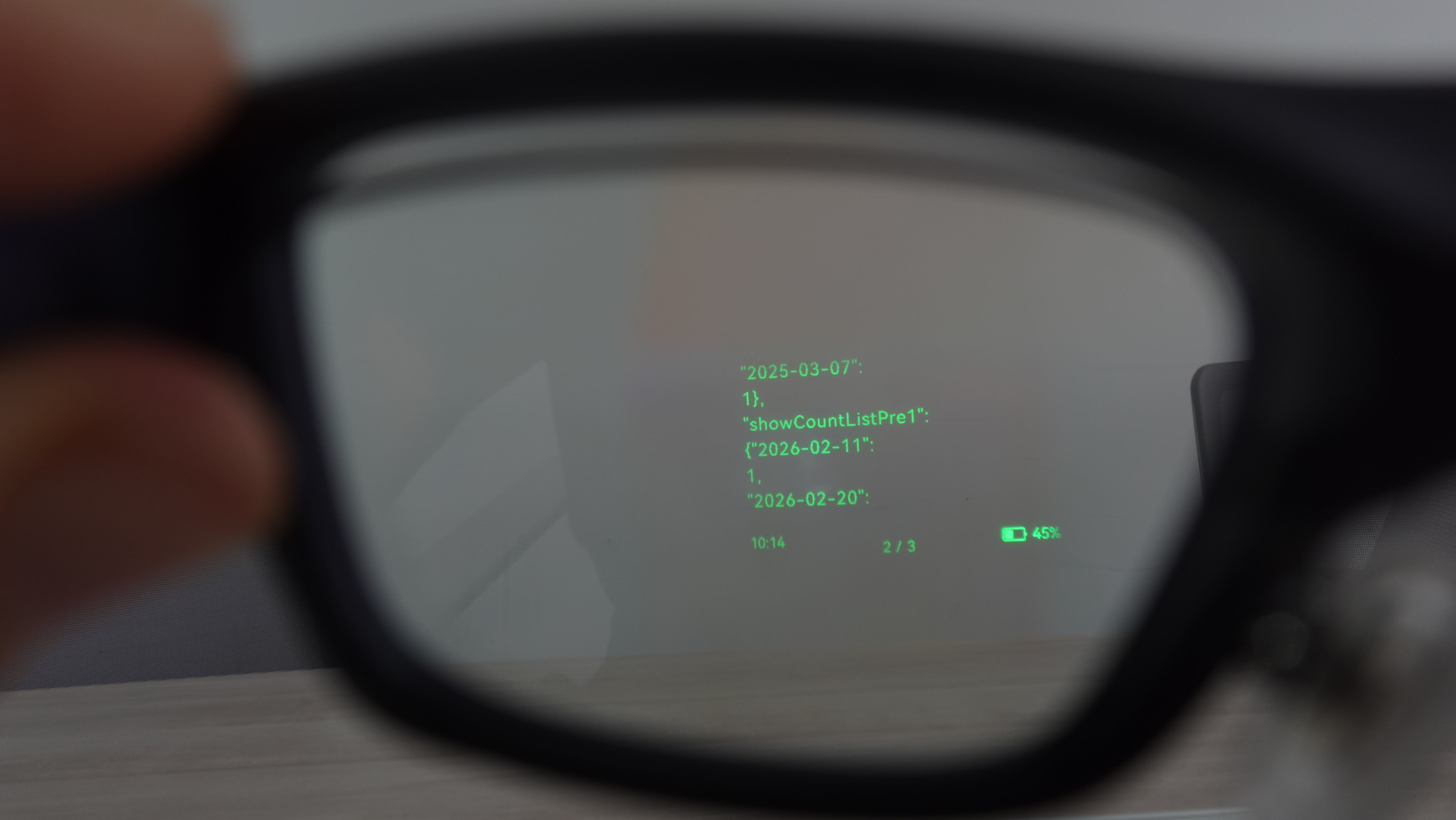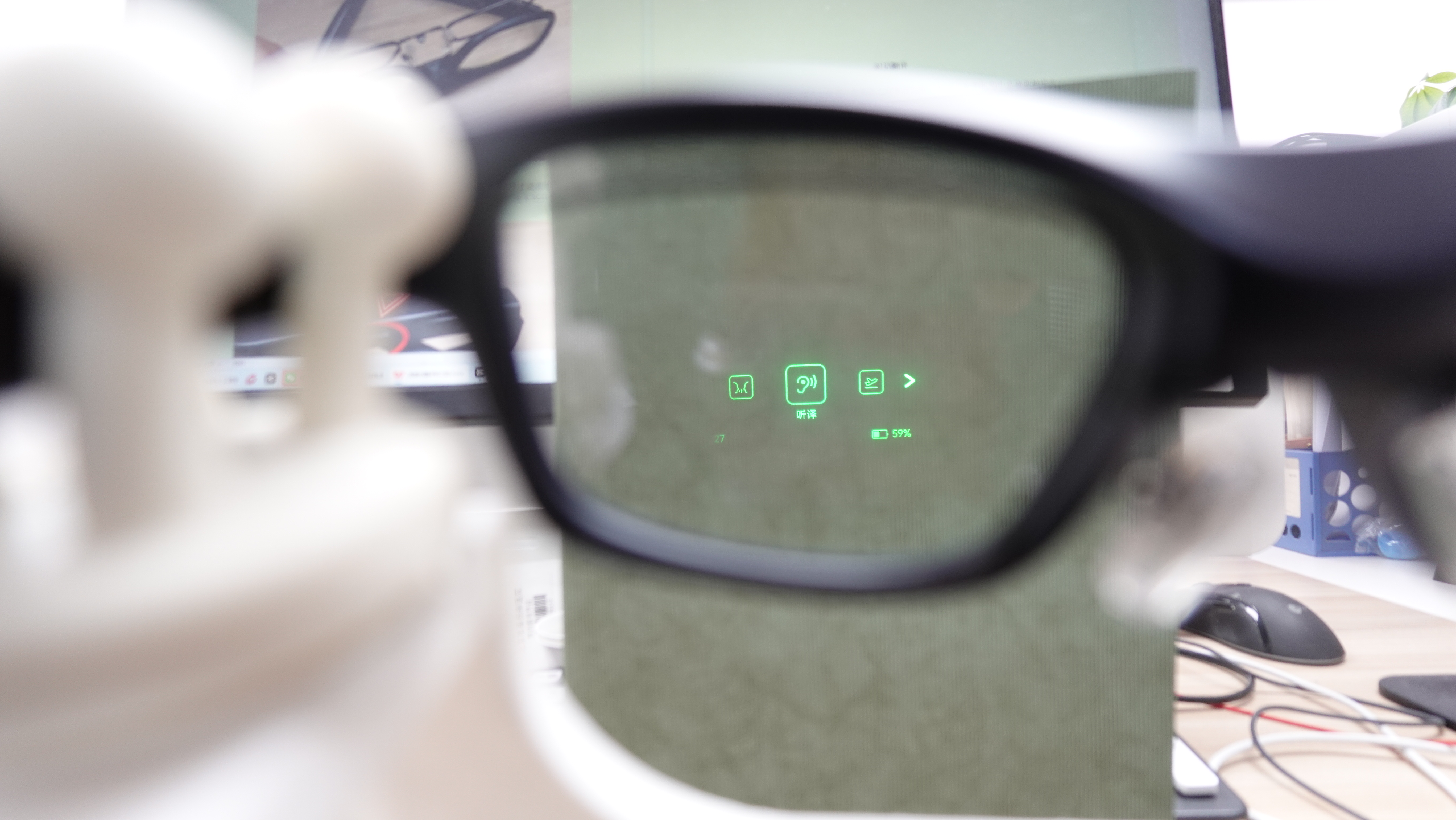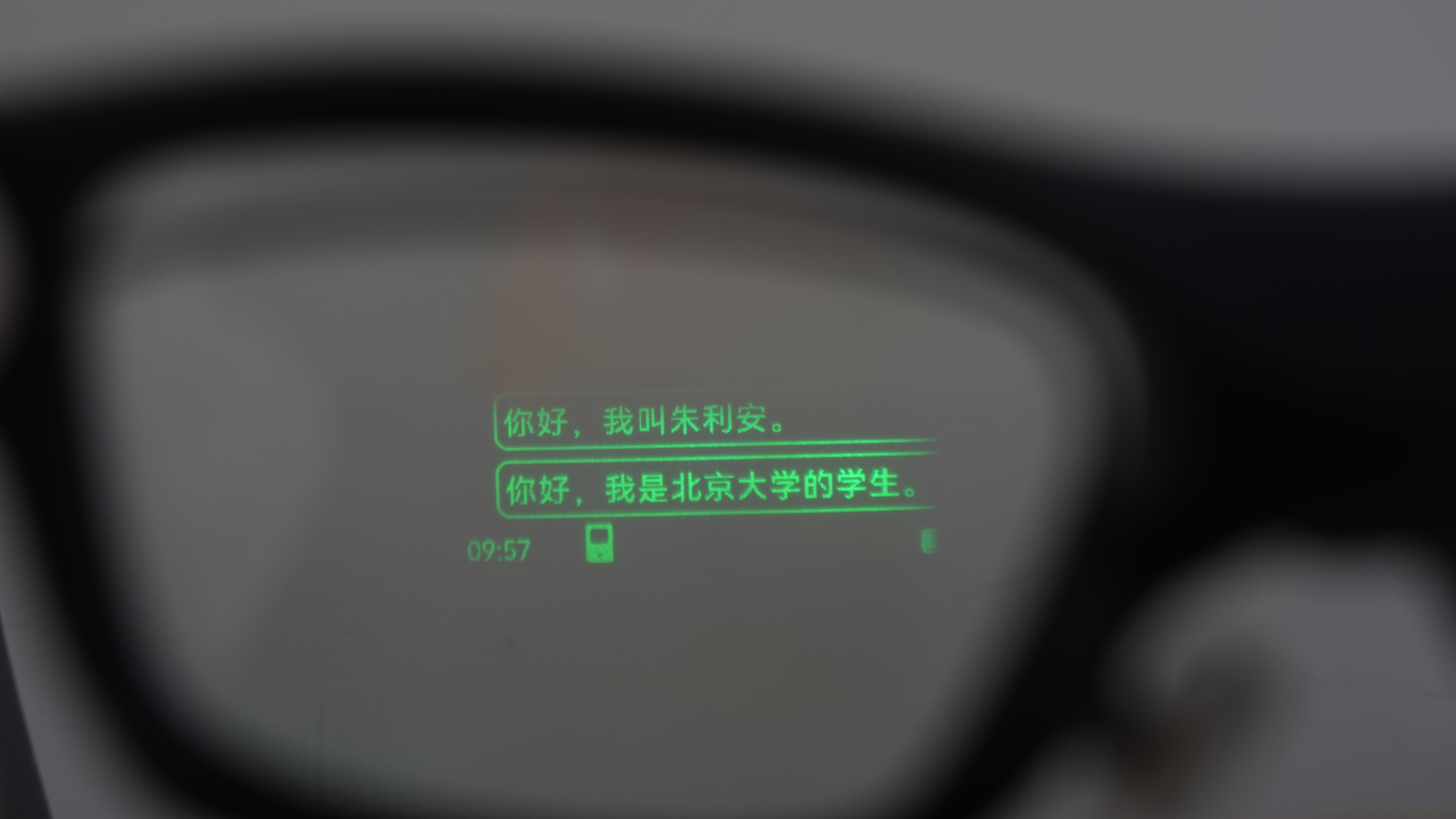 这是一款主打翻译功能的AR眼镜,带有单绿色屏显,用户可以直接在眼前看到翻译相关的一些内容。