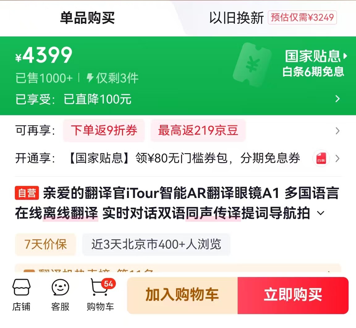 我在京东搜了一下,售价4000多块(不含各种优惠),已经达到了OPPO、vivo新品旗舰高配置手机的价格。这款翻译眼镜使用体验到底如何?本文应该是全网对这款产品最全、最详细的测评。
