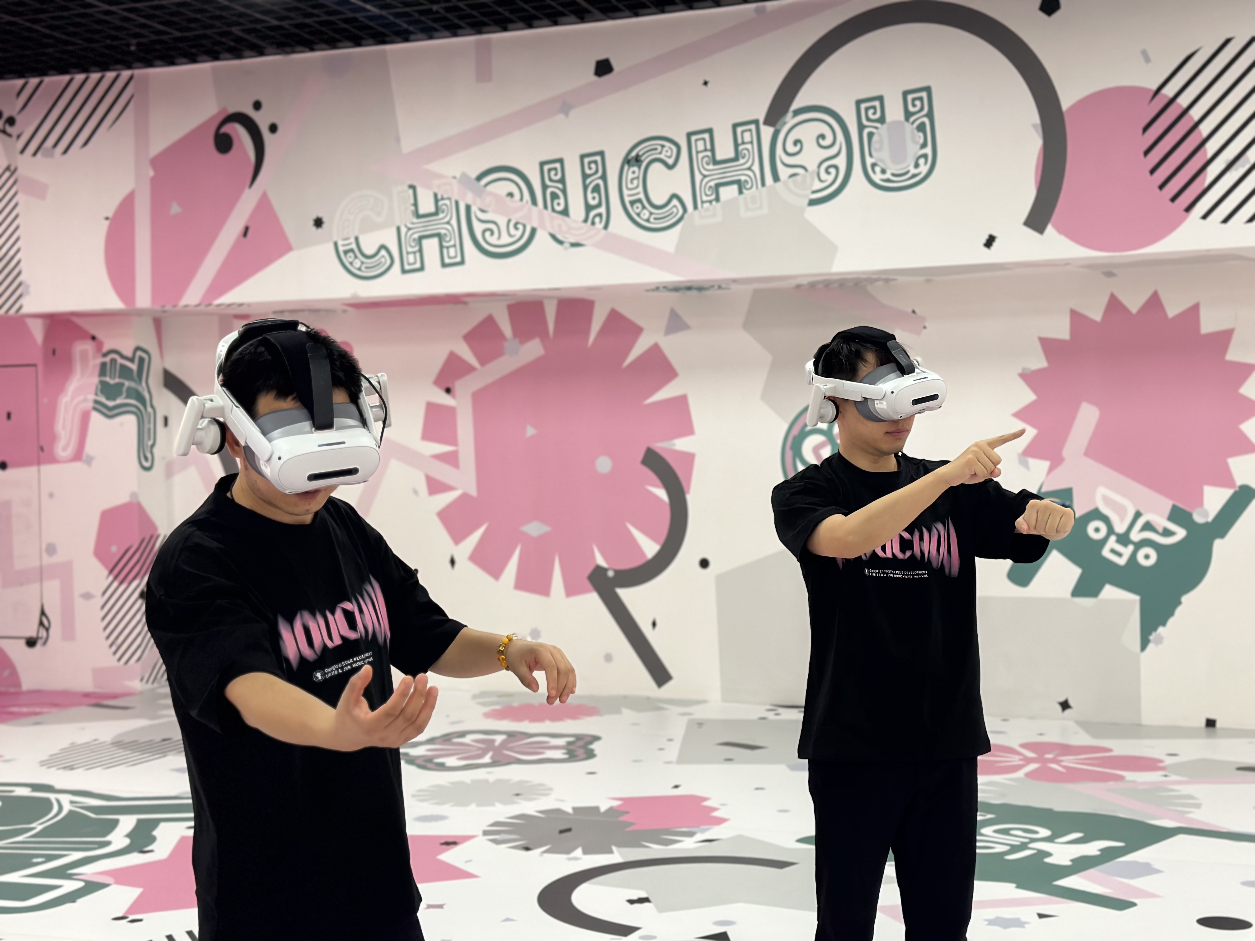 《寻找周同学之时空奇遇》的沉浸感不仅来自于丰富的剧情和互动设计,更依托于前沿XR技术的全面赋能。体验中独创的智能互动手套系统,让Q版周同学形象随时陪伴参与者,通过抬手触摸触发多种彩蛋动作和表情,大大增强了情感连结。