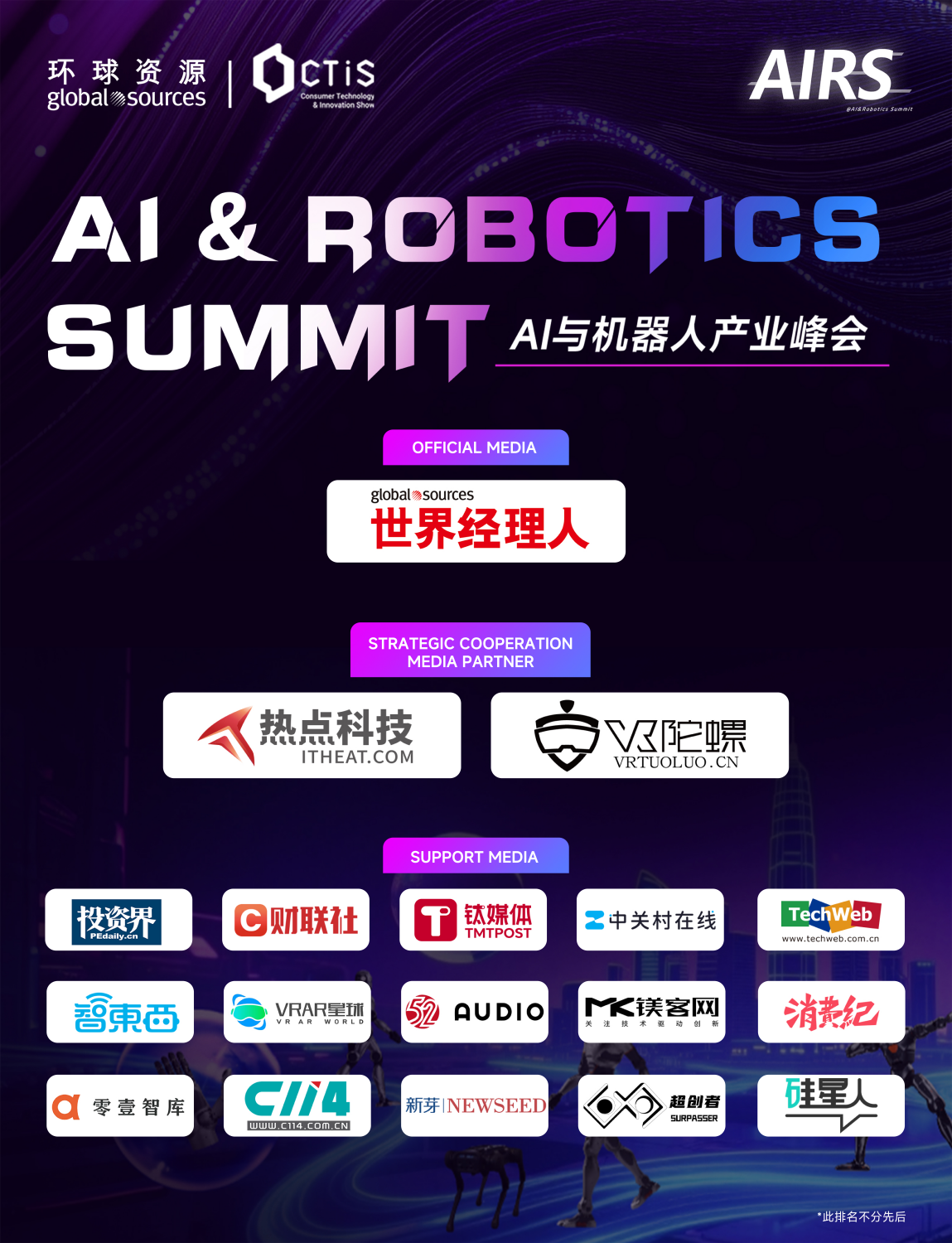 CTIS与AIRS搭建的平台,其意义超越了展示与交流,它正在成为催化这种深度融合、构建全球科技未来的‘创新反应堆’。未来,我们将继续携手全球伙伴,不仅推动AI技术的跨界融合,更致力于构建一个开放、协同、可持续的AI与机器人的科技新生态。” 环球资源AIRS峰会负责人康正中说道。