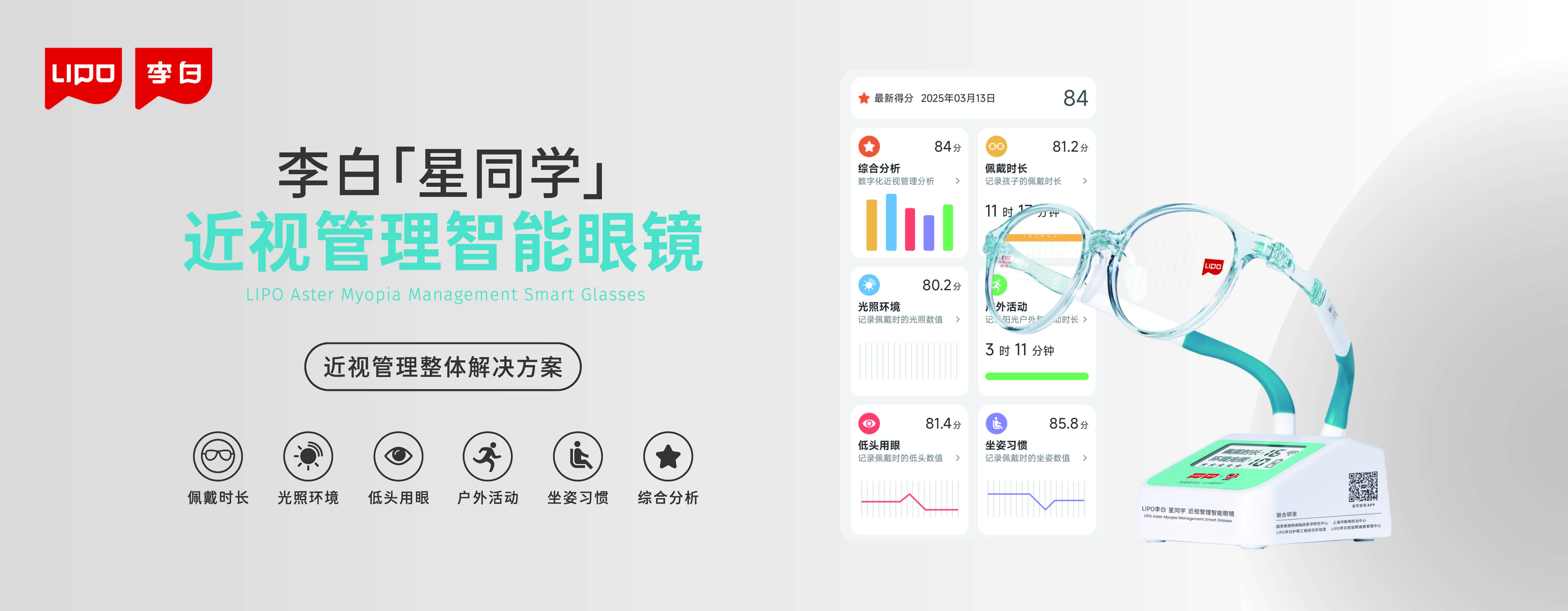 在本届高交会现场,LIPO李白眼镜在儿童青少年近视管理领域的创新力作——李白星同学也将首次亮相高交会。据了解,LIPO李白星同学近视管理智能眼镜为LIPO李白眼镜与国家眼部疾病临床医学研究中心、上海市眼病防治中心共同研发,以“LIPO Digital李白用眼行为数字化近视管理系统+六大智能场景”为核心,提供儿童青少年近视管理全面用眼行为监测解决方案。该产品可通过智能手段全方位监测孩子“佩戴时长、光照环境、低头用眼、户外活动、坐姿习惯”等用眼行为,并生成一份详细的用眼行为(UOEH)综合分析报告,帮助家长认识到孩子们每一天的用眼行为中需要改善的部分,为每个孩子找到个性化的干预方案。