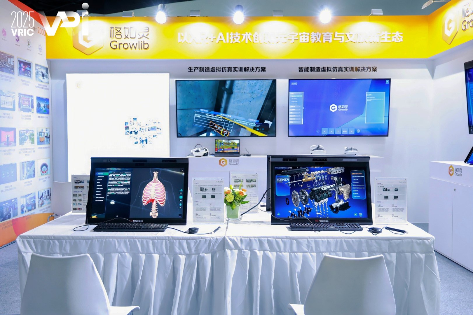 在本次展会上,格如灵全方位展示其VR/AI技术在教育培训及文旅方面的应用。解决方案方面,我们能看到格如灵在工业、医疗、智能制造、文旅等领域扎实、可落地的方案;在硬件方面,也有裸眼3D全息一体机、AI-3D实验教学一体机、86寸4K裸眼3D全息交互大屏等适应不同场景、适配不同需求的裸眼3D显示屏产品。
