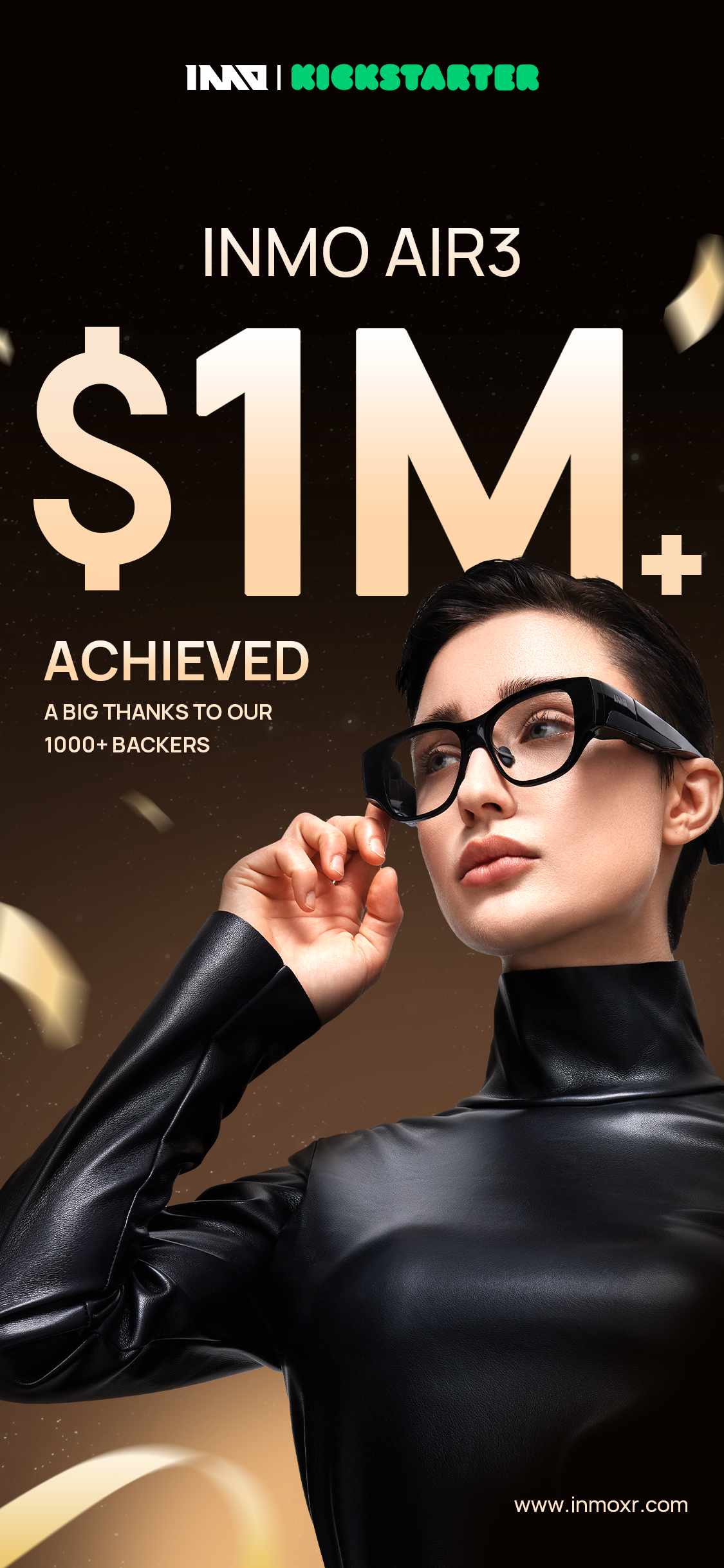 影目INMO AIR3自登陆Kickstarter以来,迅速吸引了全球科技爱好者的目光。截止到11月28日,INMO AIR3众筹金额已突破100万美元。作为全球首款实现量产的一体式双目全彩 AI+AR 眼镜,INMO AIR3的海外爆火是对其“领先技术路线+超高用户认可度”的双重验证。尤其是在与 Meta Display 同期发布、竞争激烈的背景下,其不仅成为同期 AR 赛道最受关注的现象级产品,更在海外社交媒体上获得用户的集体“自来水”传播。