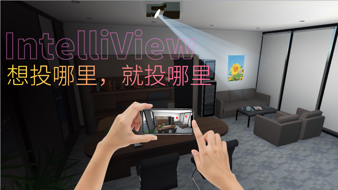 IntelliView首次实现投影画面在全空间覆盖。用户通过手机应用扫描建立空间模型,通過突破性专利技朮,使投影画面可以准确地投放到不同位置点。IntelliView平台技术通过手机应用或用戶语音,位置优化显示位置及內容,做到真正的主动/被动交互。