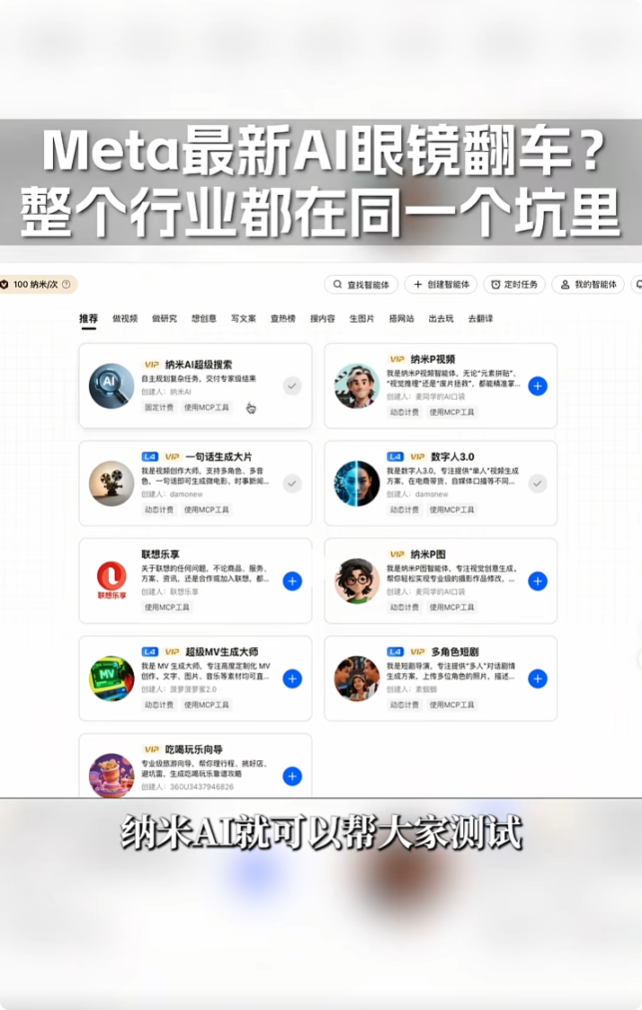 在视频的最后,周鸿祎更是宣传起了360自家的AI大模型纳米。他的原话是:“大家要是想知道哪款AI眼镜适合自己,纳米AI就可以帮大家测试。”这就更魔幻了,我已经看不懂,谁来帮忙解释。
