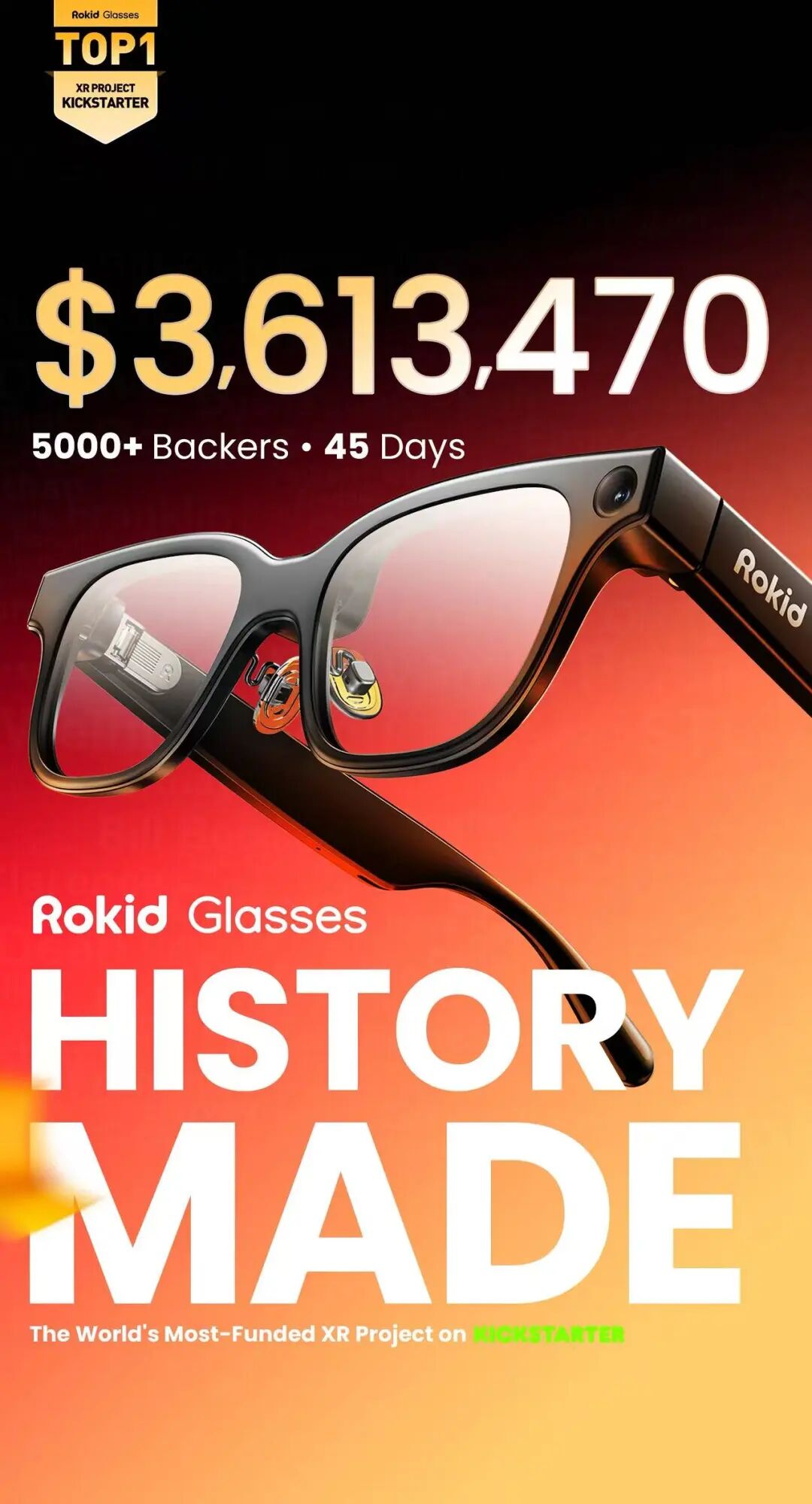 10月9日消息,中国公司Rokid乐奇(杭州灵伴科技)旗下的Rokid乐奇眼镜在海外众筹平台Kickstarter上创下了超过361万美元(约合人民币2575万元)的众筹金额,并且这一数字仍在攀升,目前已经打破了AI/AR眼镜品类在该平台的历史记录。与此同时,Rokid乐奇宣布其国际事业部正式落户上海,将其视为链接全球市场的新起点。