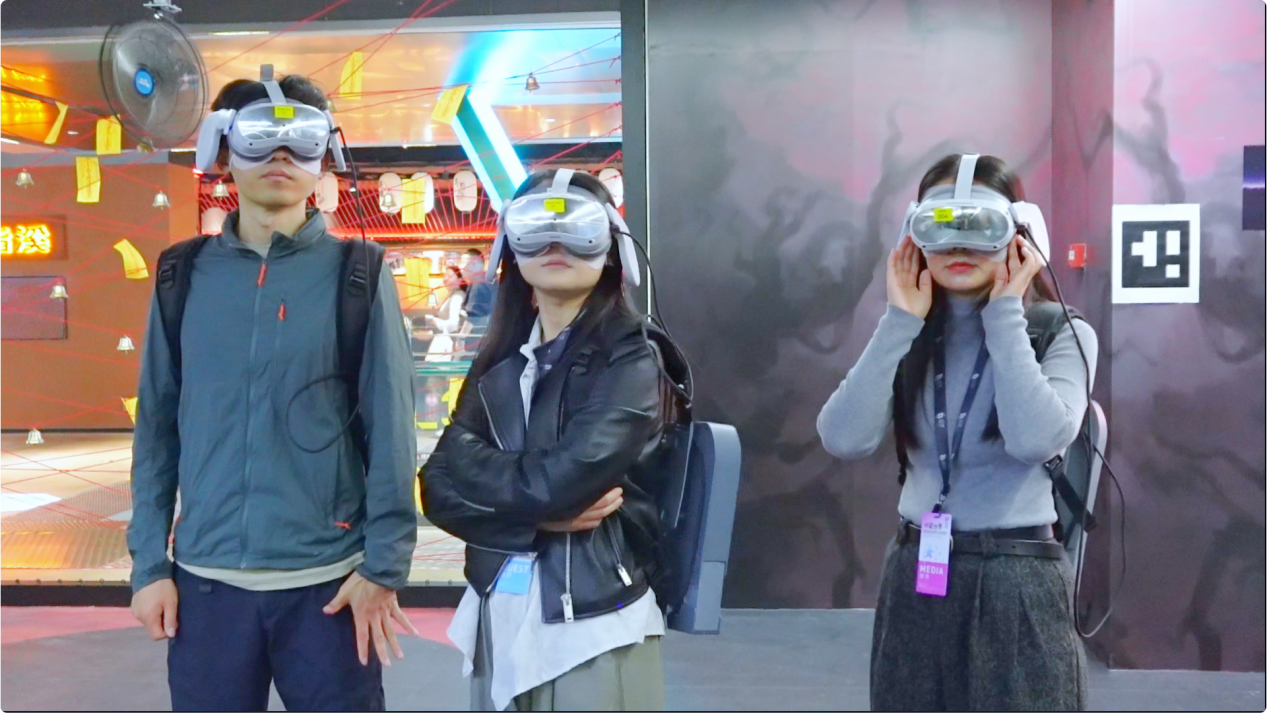 嘉宾和VRAR星球记者在SIF 2025现场体验沉浸式作品《道诡异仙》