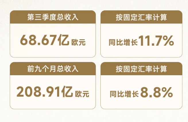 10 月 20 日,依视路陆逊梯卡发布的 2025 年第三季度财报,可以说是“炸场”了。数据显示,第三季度总收入高达 68.67 亿欧元,按固定汇率计算,同比猛增11.7%。这不仅远超市场预期,更创下了集团自2018年成立以来的最佳单季表现。而前九个月的总收入也稳步攀升至208.91亿欧元,同比增长8.8%。