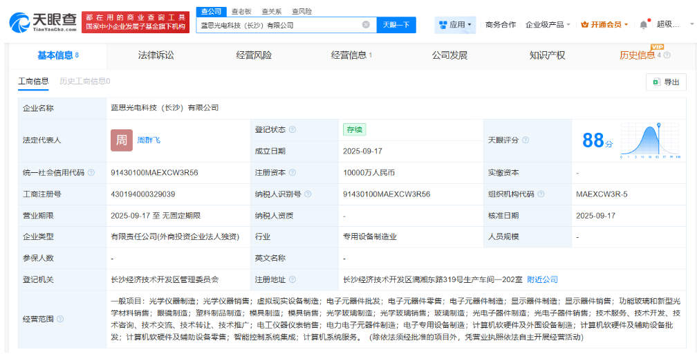 同时,为加深光学领域布局,蓝思科技还新成立子公司蓝思光电科技(长沙),专门攻关光波导镜片、超轻量材料等核心元件的自主研发。光波导技术被视为AR设备的“技术心脏”,直接决定着显示效果与设备的轻量化水平。蓝思科技在此领域的突破,意味着它已卡位下一代AR制造的核心环节。