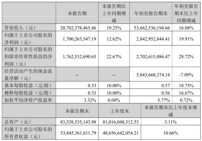 现金流方面,公司前三季度经营活动产生的现金流量净额为58.44亿元,同比下降7.09%。截至报告期末,公司总资产835.39亿元,较年初增长3.11%;归属于上市公司股东的所有者权益538.45亿元,较年初增长10.66%。