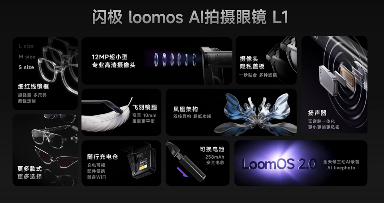 本次发布会推出的录眸loomos L1 AI眼镜,并非小幅升级产品,而是基于“凤凰架构”的全面重构,用公司的话说是“让AI眼镜涅槃重生”。