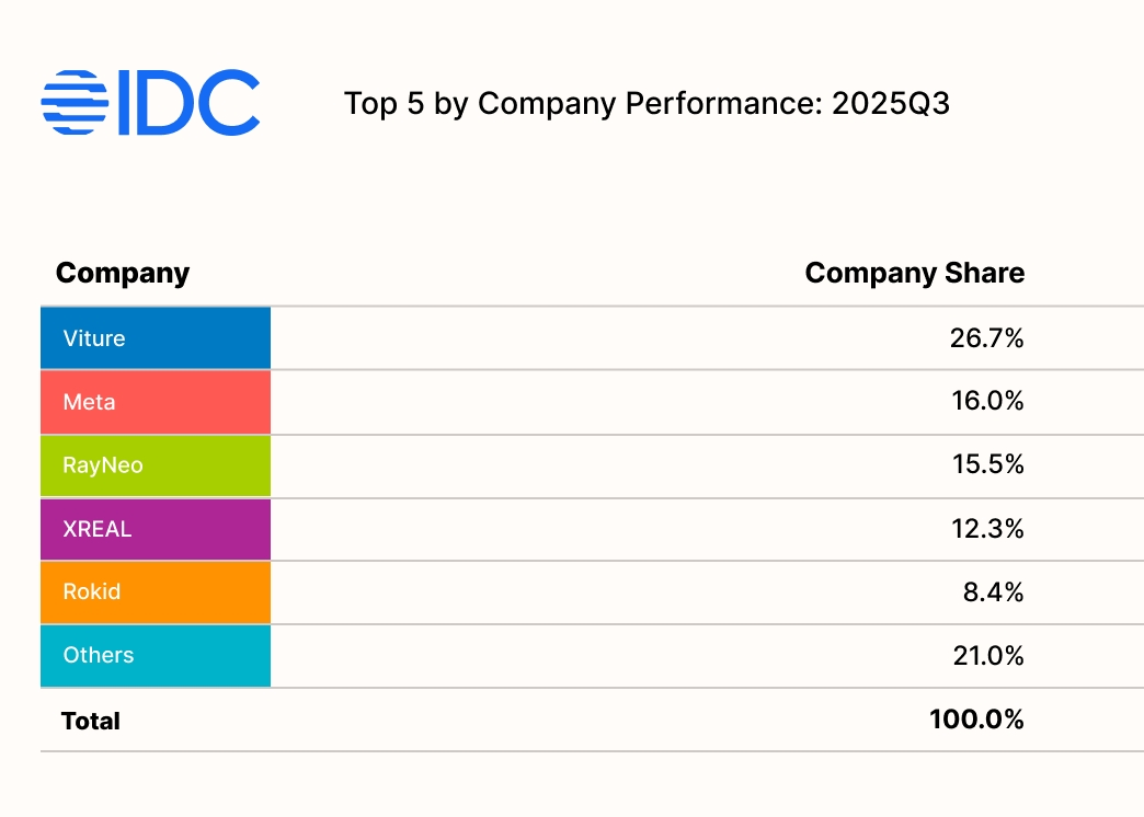 IDC 预测,2026 年全球智能眼镜市场出货量将突破 2368.7 万台。有人说 2026 年是“百镜大战”真正开打的一年,而 VITURE 已经占据了领跑位置。