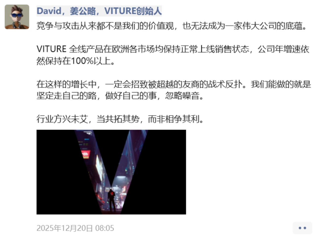 VITURE创始人David的朋友圈截图