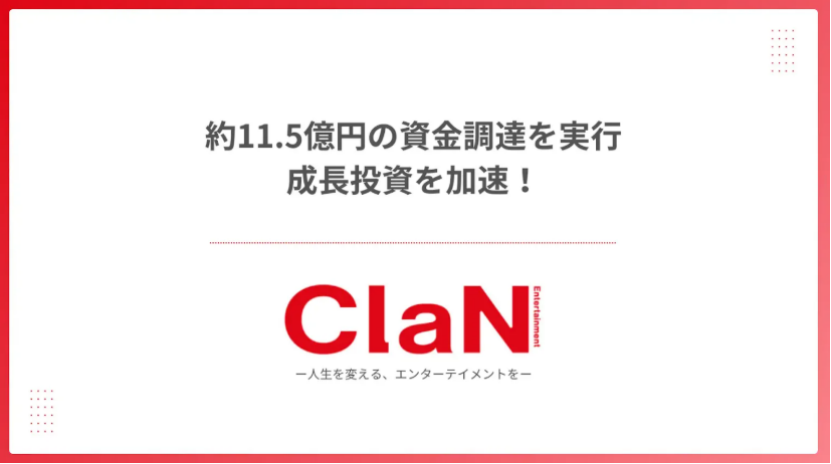 虚拟主播运营商ClaN完成约11.5亿日元第三方配股增资
