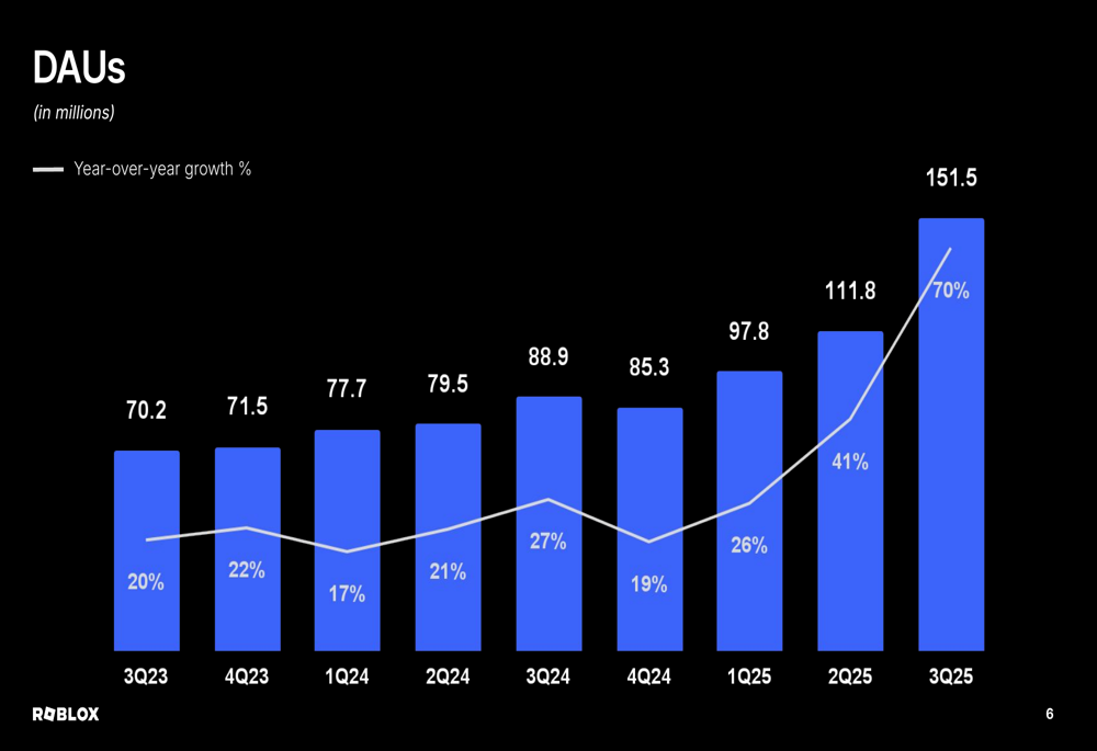 Roblox公布2025年第三季度财务业绩:业绩强劲但股价下跌