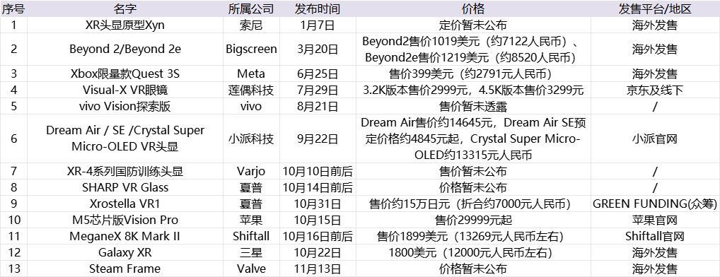 2025年,XR硬件市场持续演进,产品形态与功能进一步多元化。全年新品发布贯穿始终,年初的国际消费电子展(CES)与世界移动通信大会(MWC)成为重要亮相舞台,下半年则迎来更为密集的上市潮。