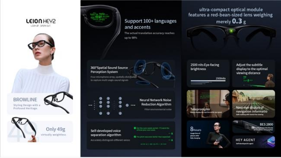 6月12日,亮亮视野在韩国首尔举行 Leion 品牌新品发布会,正式推出旗下消费级 AR 眼镜 Leion Hey2。该产品突破了 AR 眼镜行业在轻量、性能、续航之间的“不可能三角”困境,整机重量仅 49 克,支持 100 多种语言、延迟低于 500ms 的实时翻译,单机工作续航达 8 小时,配合便携式眼镜盒可实现 96 小时续航。