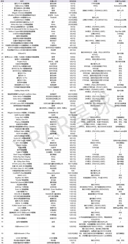 从产品类型看,具备拍摄、音频与AI交互功能的智能眼镜是绝对主流,全年发布近百款,占据市场核心。XR头显品类相对稳定,但也不乏苹果、三星等巨头的旗舰迭代。