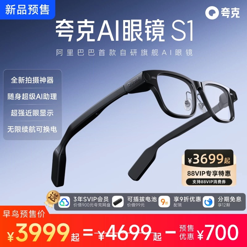 阿里巴巴将于24日零点开启夸克AI眼镜预售,平台补贴后最低3699元