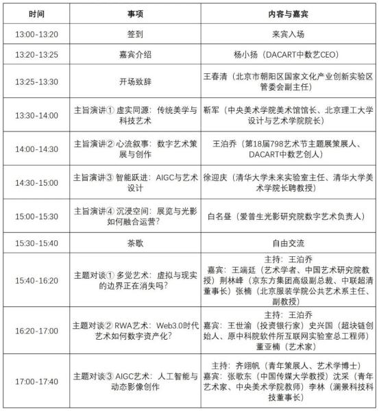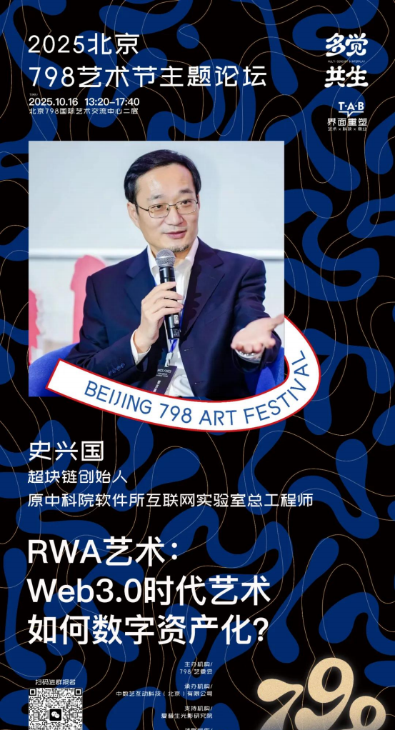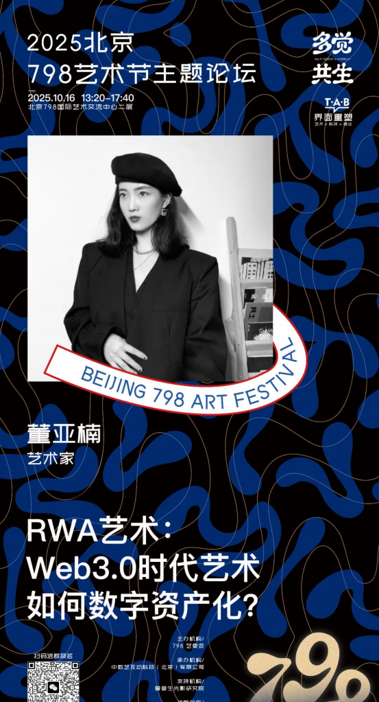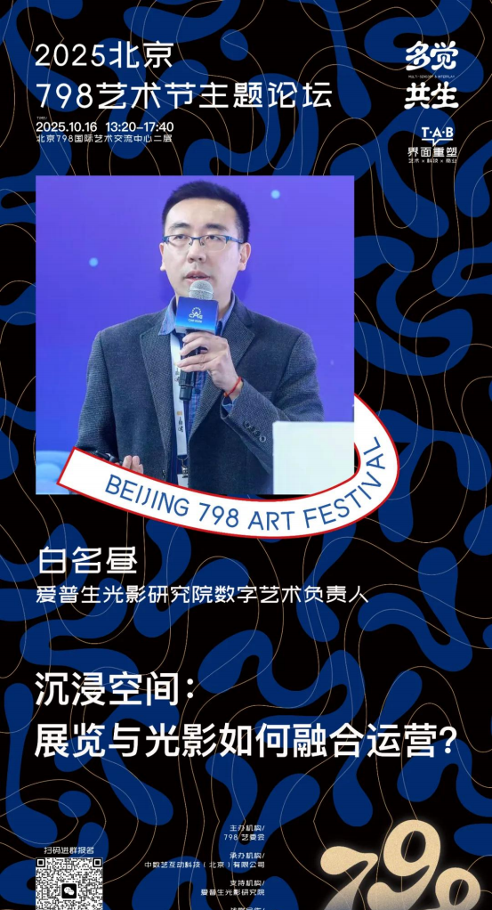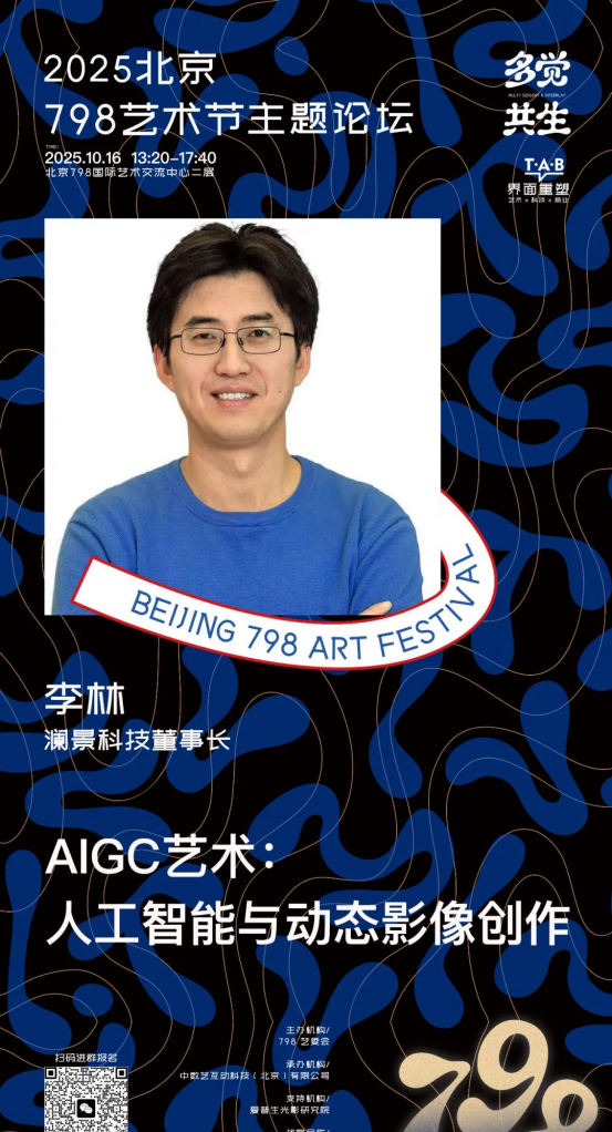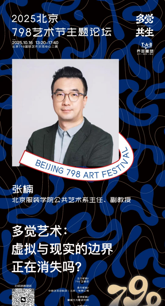 作为艺术节的核心活动单元之一 ,T.A. B 论坛是由数字艺术中国( DAC 中数艺) 发起 , 旨在构建科技( Technology) 、艺术( Art) 与商业( Business) 之间的跨界交流平台 。聚焦技术进步对艺术创作 、策展与产业结构的推动 ,探讨数字艺术在文化叙事 、感官体验与价值体系中的再定义 ,为当代创作者 、研究者与产业参与者提供多维度的思考视角与实践参照 。 自创办以来, T.A. B 论坛以开放 、 前瞻和实践为导向 , 汇聚了艺术家 、 学者 、 工程师 、 企业家等多领域思想者 , 探讨数字艺术在文化遗产 、 商业生态和社会创新中的新可能 。 本届论坛作为第 18届 798 艺术节主论坛 ,将继续聚焦 “ 艺术 × 科技 × 商业 ” 的深度融合与未来走向 , 呈现当代艺术节语境中最具启发性的跨界思想与案例。