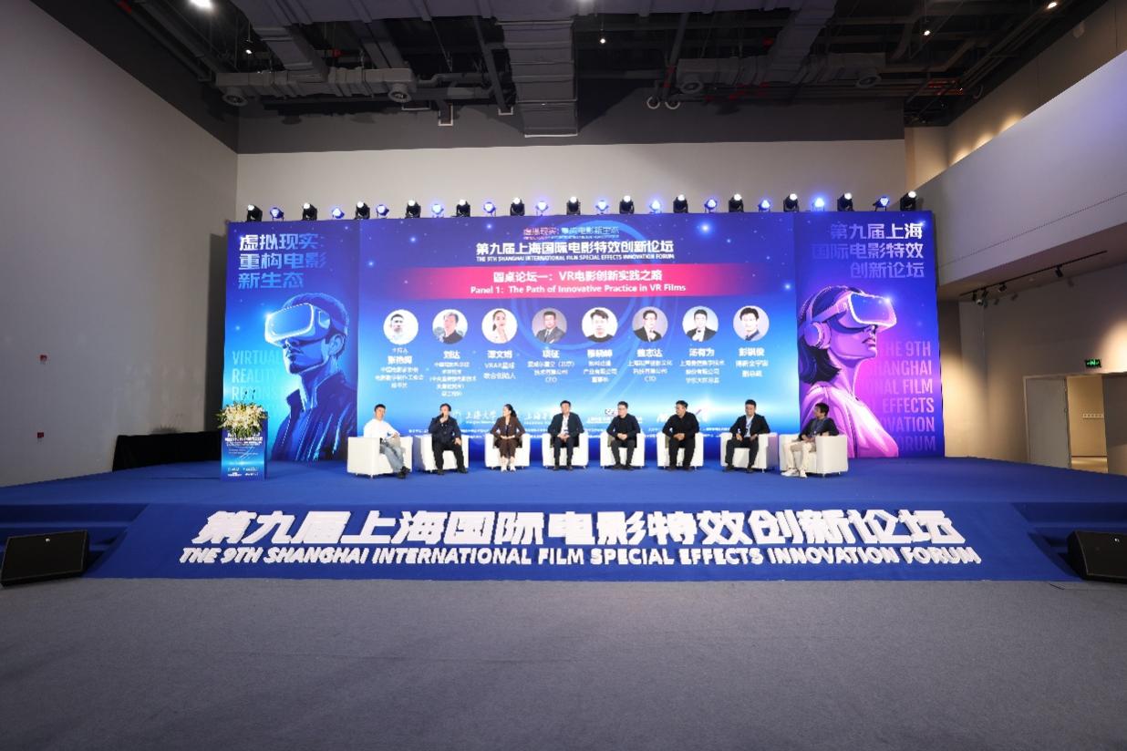 2025 年 10 月25 日,第九届上海国际电影特效创新论坛在上海大学延长校区交流展示中心成功举办。论坛以 “虚拟现实:重构电影新生态” 为主题,汇聚政产学研用多方力量,通过主旨演讲、圆桌论坛、合作签约、成果展示等环节,深入探讨 VR 电影技术革新、人才培养与产业升级路径,同期还举办 “视听静界” VR 影像展,全方位展现电影科技融合发展新成果。本次活动VRAR星球受邀来到现场参与报道。