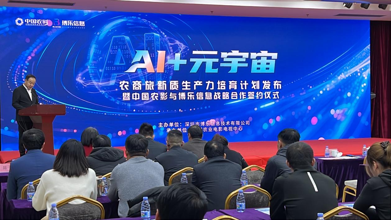 11月29日,《AI元宇宙・农商旅新质生产力培育计划》发布暨战略合作签约仪式在中国农业电影电视中心(以下简称“农影中心”)隆重举行。作为农业领域的“国家队”,农影中心与深耕扩展现实技术多年的国家高新技术企业深圳市博乐信息技术有限公司(以下简称“博乐信息”)达成深度战略合作,共同开启数字技术赋能农商旅产业升级的全新篇章。此次跨界联手,既是国家级媒体平台与前沿科技企业的优势互补,更是积极响应国家“人工智能+”行动号召,以AI元宇宙技术激活农商旅新质生产力的重要实践,为产业高质量发展注入鲜活数字动能。