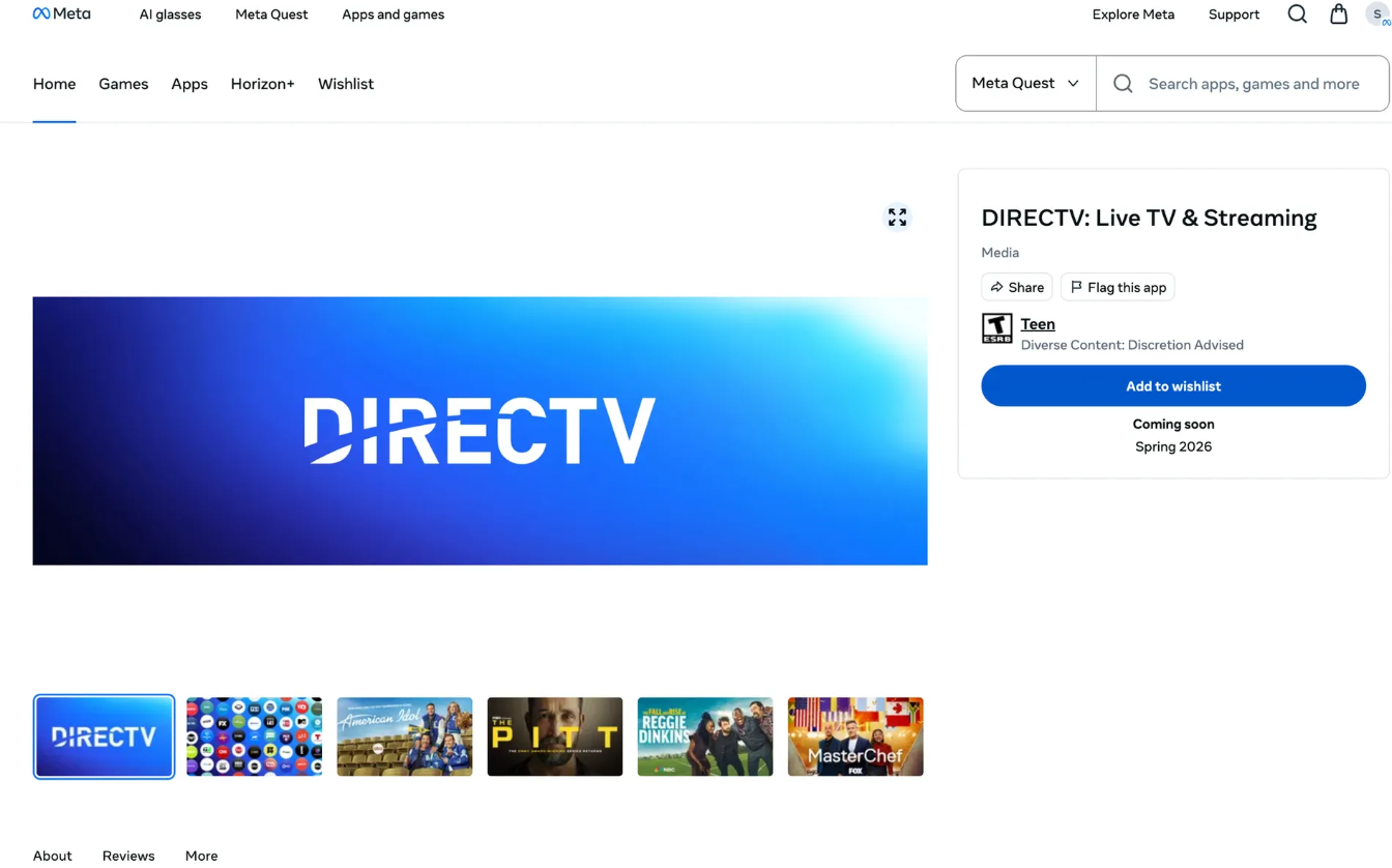 DIRECTV计划在2026年春季推出MetaQuest直播电视流媒体应用