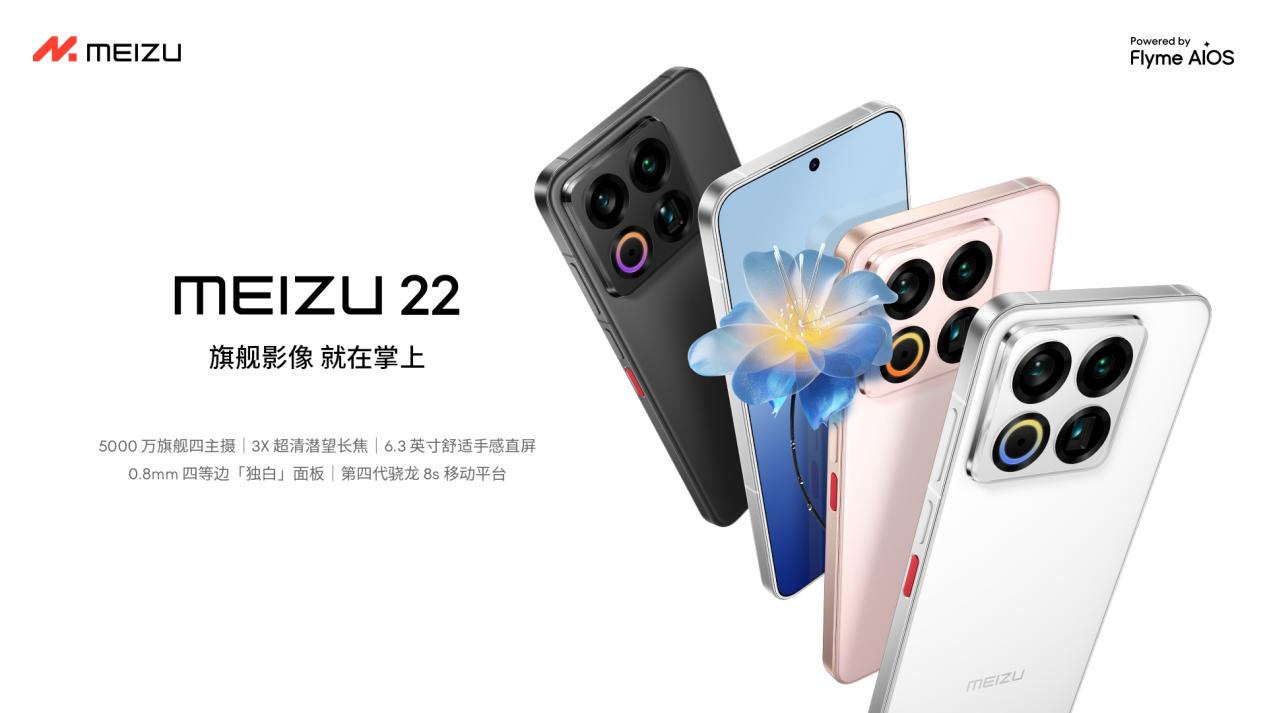 此次展出的旗舰手机魅族22,延续“旗舰影像,就在掌上”的产品理念,凭借均衡配置成为焦点。该机型采用6.3英寸1.5K LTPO屏,支持1-120Hz自适应刷新率与6000nits峰值亮度,搭配2.5D微弧面板与等深四曲3D背盖工艺,190g轻量化机身带来舒适握持感。性能上,其搭载第四代骁龙8s移动平台与5510mAh“魅族海棠电池”,支持80W有线及66W无线快充,更成为行业首个通过南德TÜV 72个月久用流畅A+认证的手机。影像系统配备四颗5000万像素级镜头,首次加入索尼IMX882 3倍潜望长焦,兼顾全场景拍摄需求。