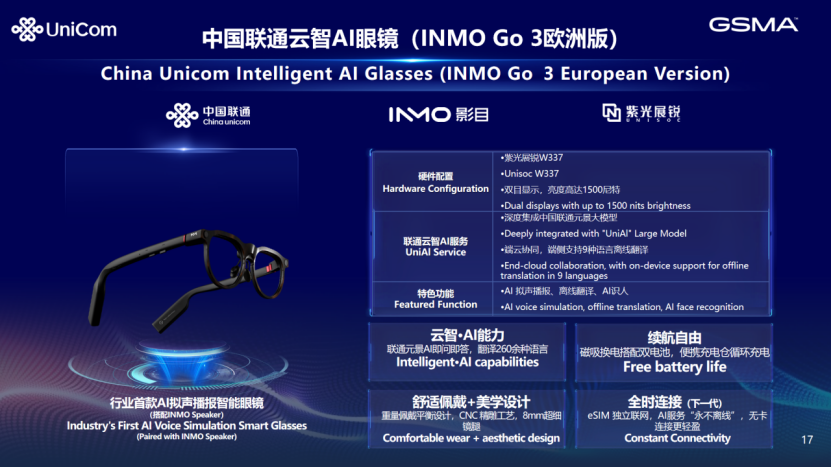 在MWC 2026举办二十周年之际,影目INMO携手中国联通 、紫光展锐等生态合作伙伴,于展会期间正式发布INMO Go 3欧洲定制版。此次亮相不仅标志着影目INMO产品体系在欧洲市场的进一步落地,也展现了中国AI终端技术与产业协同能力在全球舞台上的最新成果。