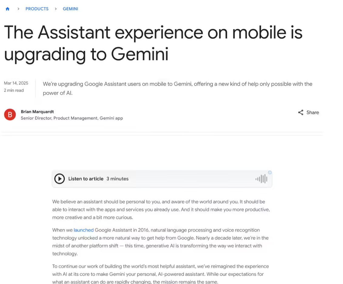 全面转向Gemini,谷歌明年3月停用Google Assistant语音助手