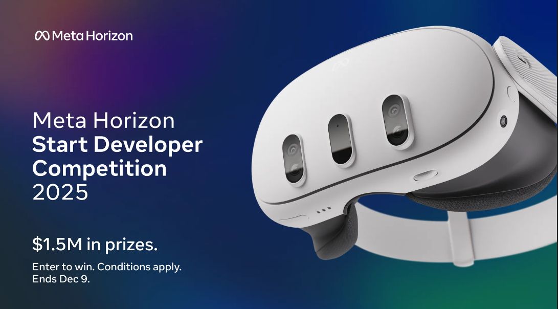2025年 Meta Horizon Start 开发者大赛,将向全新的 Quest 应用程序及"重大"更新颁发总计 150 万美元的奖金,共设 32 个奖项,最高奖金达 10 万美元。