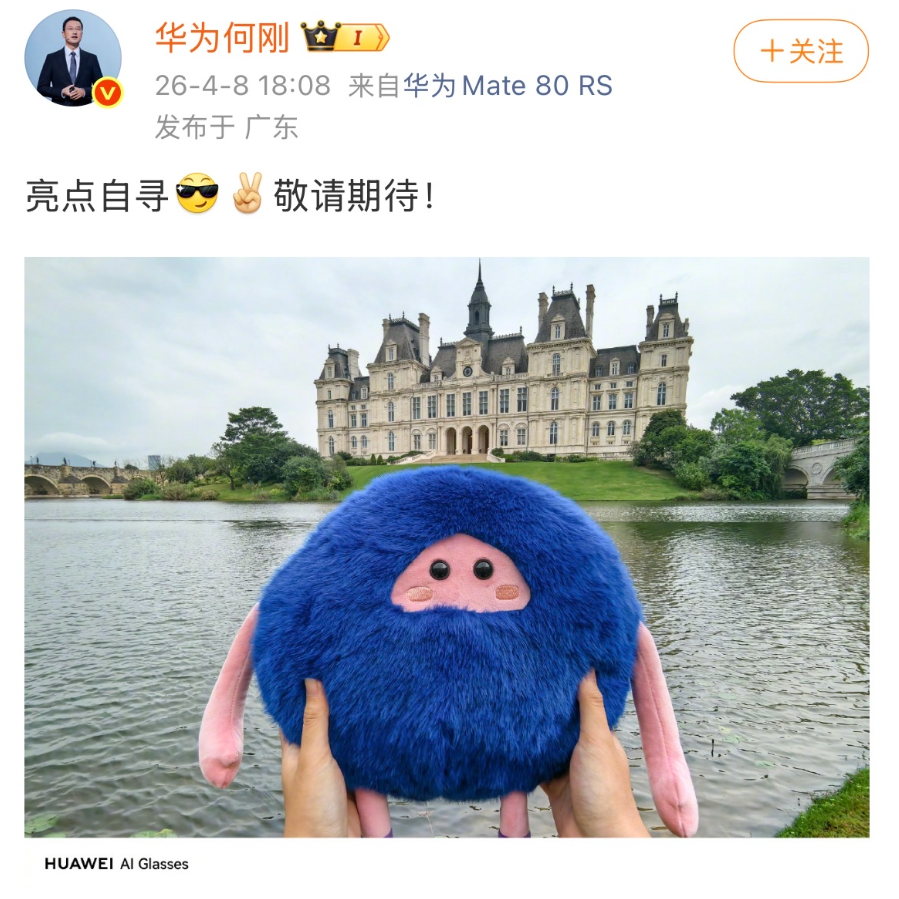 华为终端BG CEO何刚发布带有HUAWEI AI Glasses水印照片,暗示新品进入发布倒计时